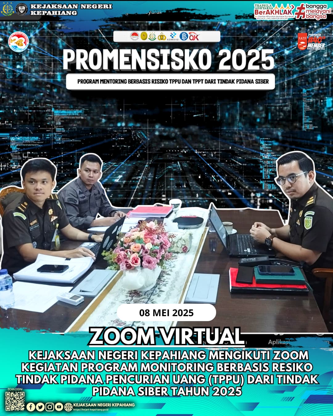 Zoom Virtual dalam kegiatan Program Monitoring Berbasis Resiko Tindak Pidana Pencucian Uang TPPU) dari Tindak Pidana Siber Tahun 2025.